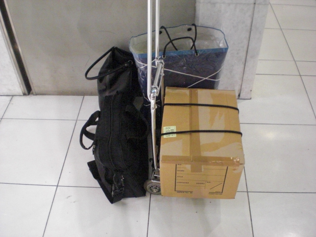 ・梅田で友人まーぼ~と合流。ダンボールを運ぶカートを貸してもらってようやく楽になる。